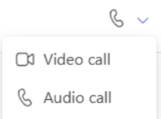 Meet Now • In a Chat , click the drop-down menu next to the phone icon, select Video Call or Audio Call to start an instant meeting with the participants of that chat/channel