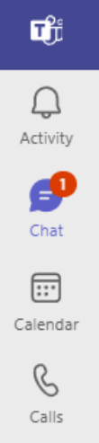 Navigating Teams and Channels • Click on Chat in the left-hand app bar (you will notice that your Chats and Teams all sit together