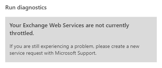 The process takes about 15-30 minutes to complete on the tenant, running the diagnostic tests again after this time should come back to say that EWS are not currently throttled.