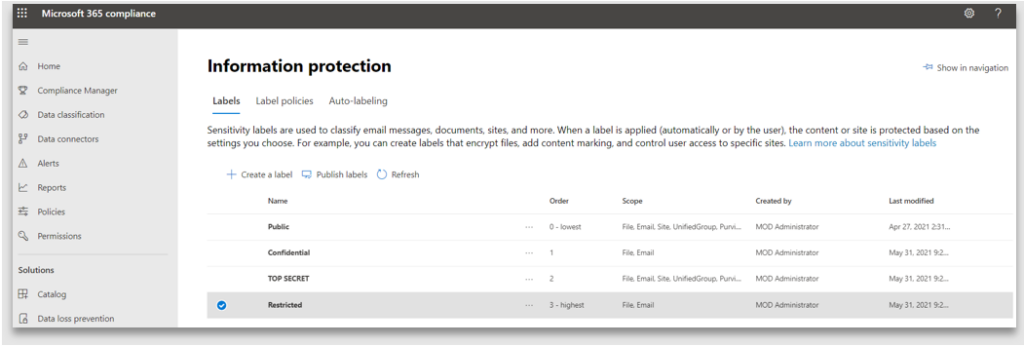 One of the features from the Microsoft 365 (M365) Information Protection stack is “Sensitivity Labels”. It is essentially a method to enable users to classify the content being produced by assigning a label. The labels can also be applied automatically, however this feature has specific licensing requirements which can be found here.