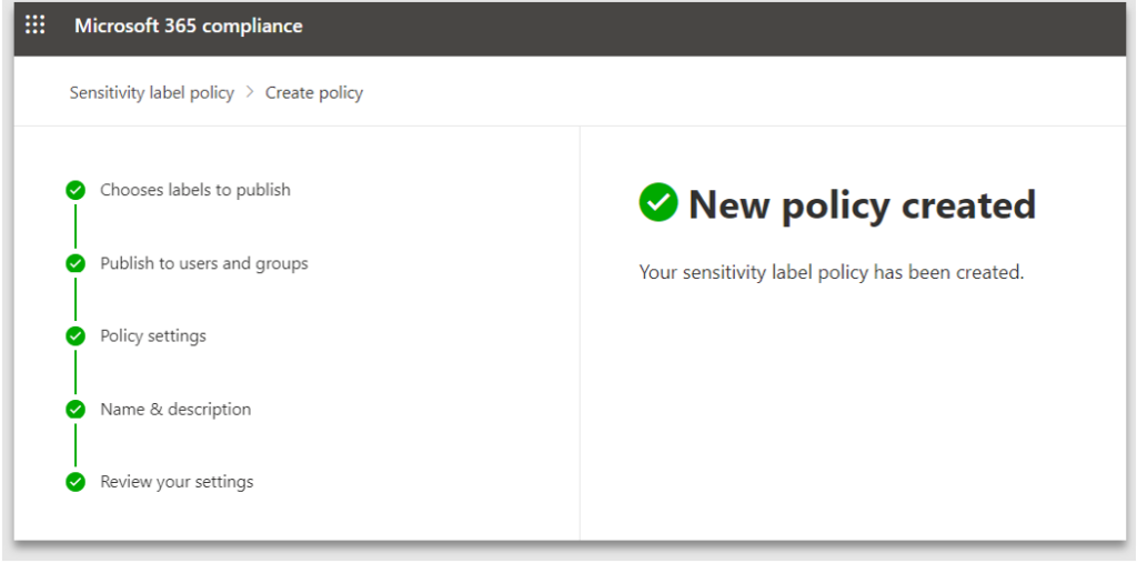 1. From the M365 Compliance Centre, select Information Protection and Create a label
