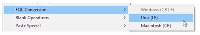 Using your favorite text editor, mine’s Notepad++ which I’ve used in this blog as an example, set Notepad++ format to Unix EOL