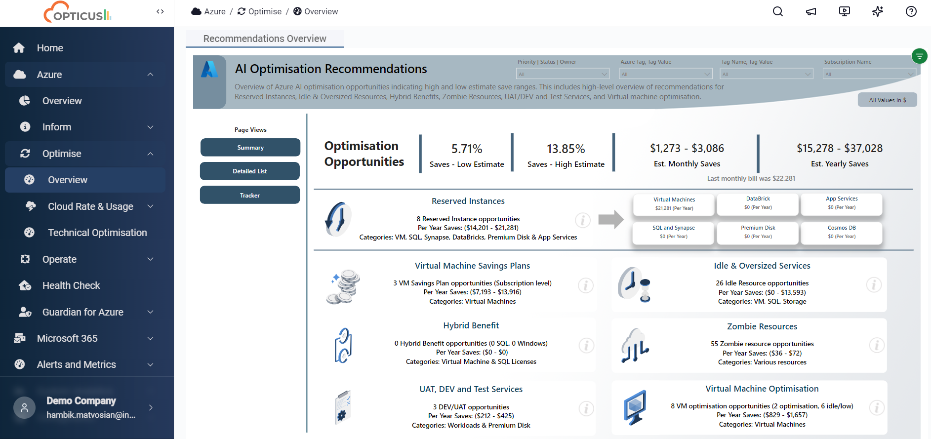 Opticus provides users with an opportunity to monitor change, encourage recurring optimisation, and measure the impact of activities – honoring the continuous optimisation spirit of FinOps.