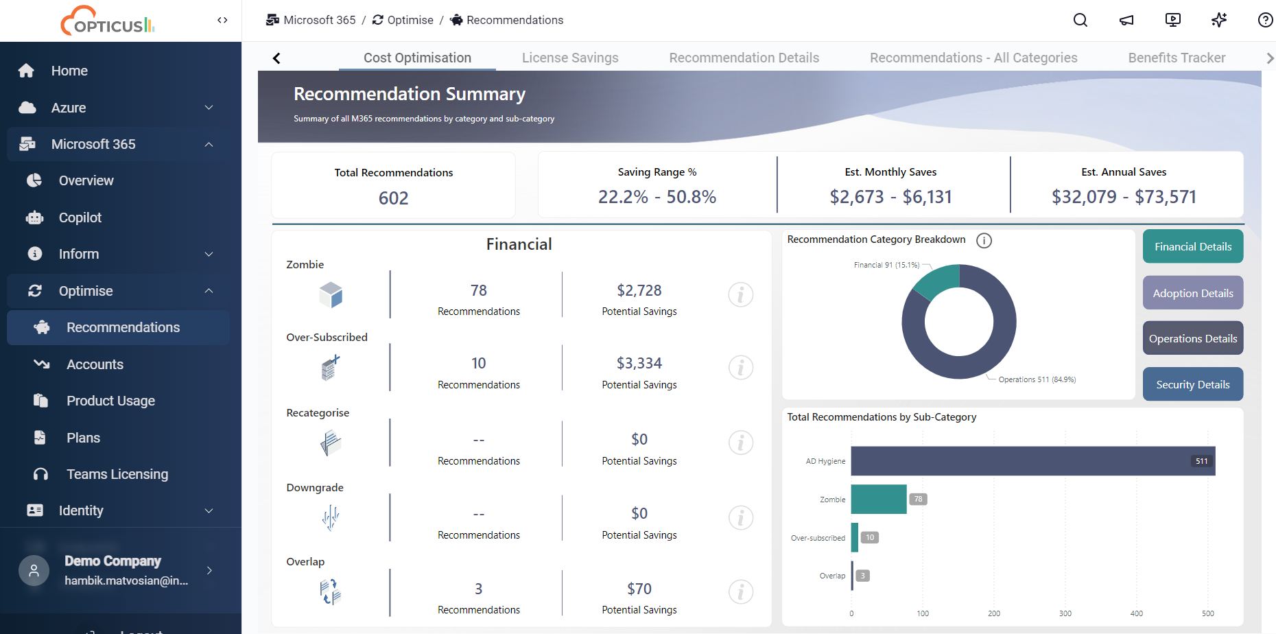 Opticus channel partners can access insights into both Azure and Microsoft 365 from one platform to rapidly uncover revenue opportunities across their entire client-base