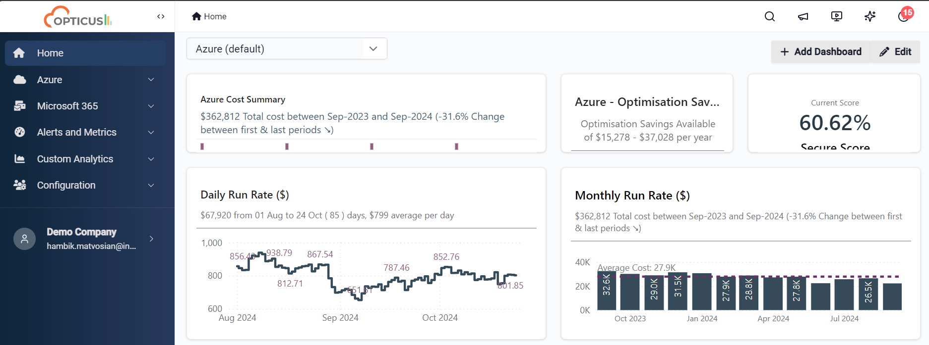 Opticus channel partners can access insights into both Azure and Microsoft 365 from one platform to rapidly uncover revenue opportunities across their entire client-base