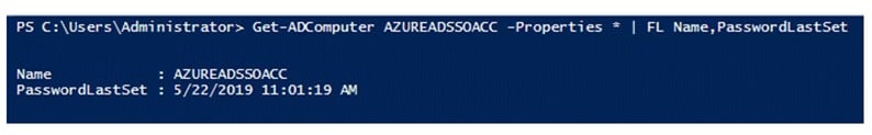 Get-ADComputer AZUREADSSOACC -Properties * | FL Name,PasswordLastSet