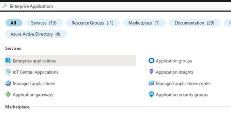 - In the Search Resources, type: Enterprise Applications